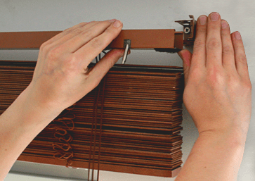 Используются тросики для фиксации ламелей параллельно стеклу, чтобы удерживать жалюзи в наклонном положении.