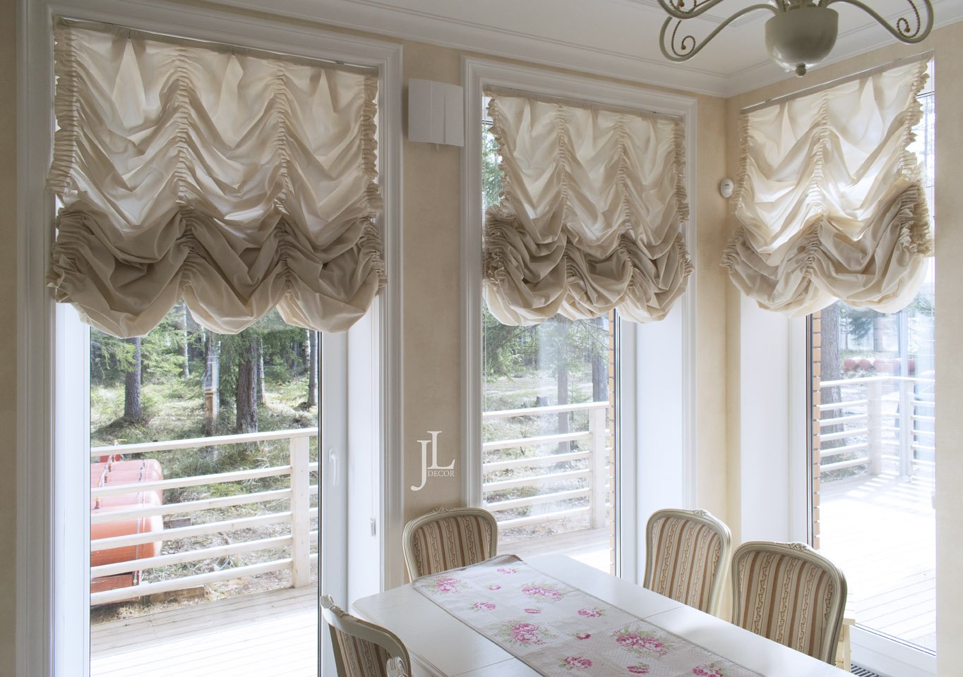 - Эстетичный внешний вид. Шторы образуют ровные, выразительные складки, которые придают окну элегантный вид. Можно регулировать глубину складок, меняя количество люверсов.